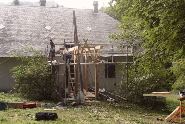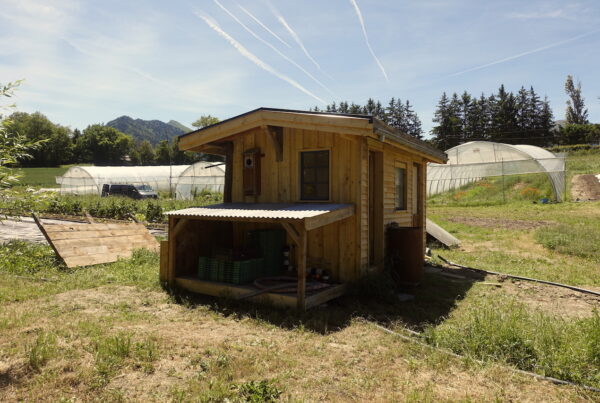 Construction d'une cabane agricole pour le Jardin de la Charbonnière à Prébois. C'est nos voisines…