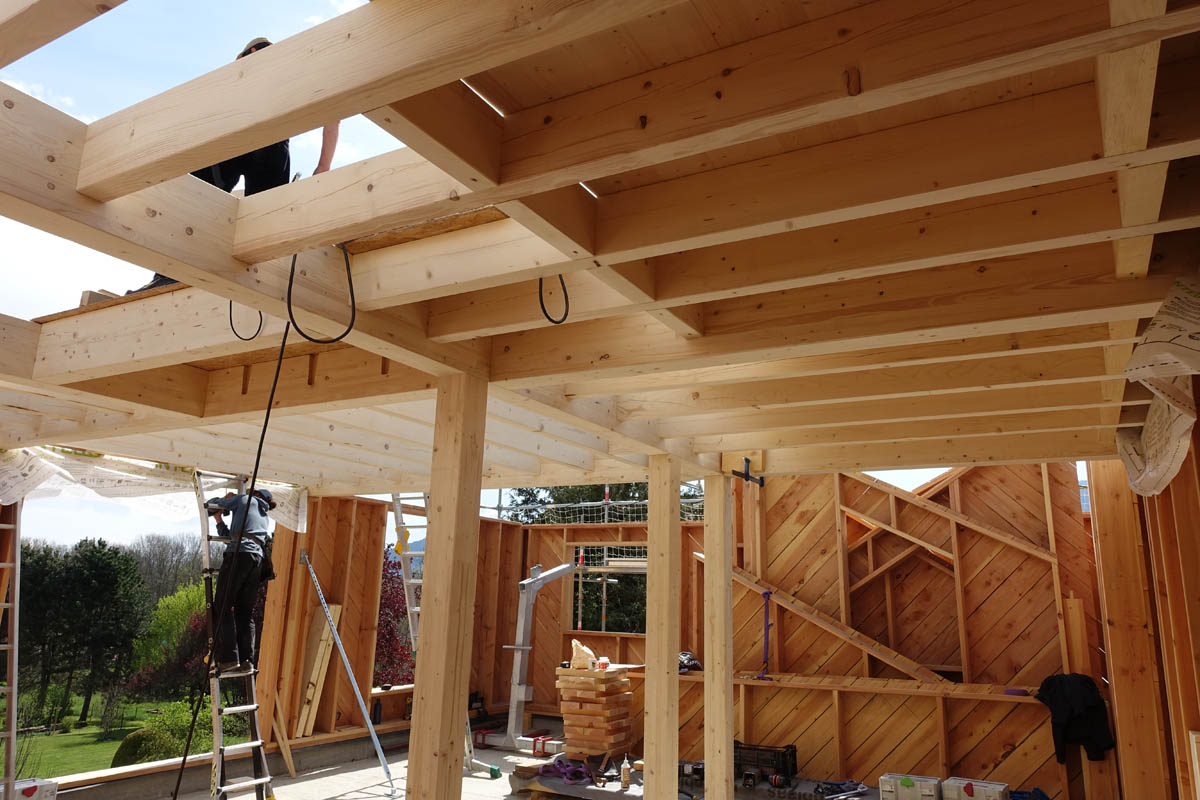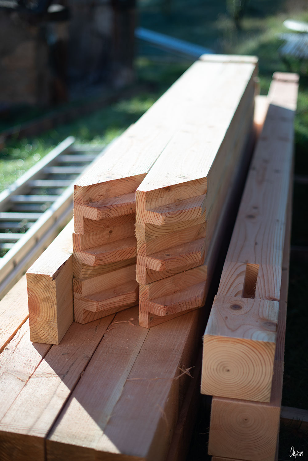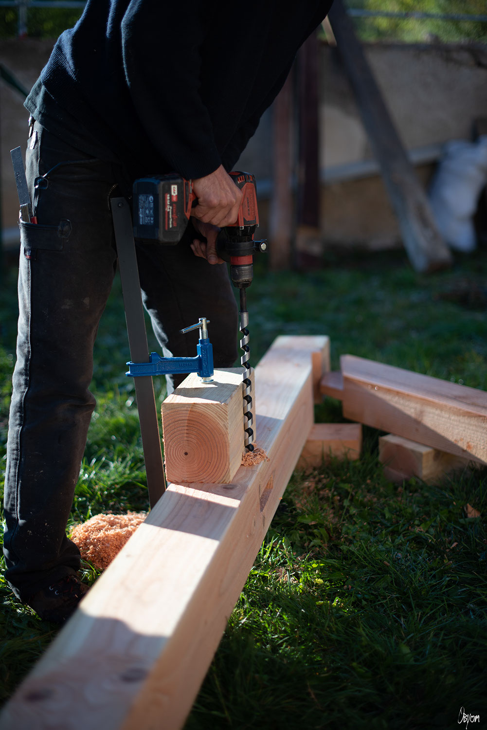 Nous favorisons l’emploi d’assemblages traditionnels en bois sans quincaillerie métallique pour la durabilité et l’esthétisme.