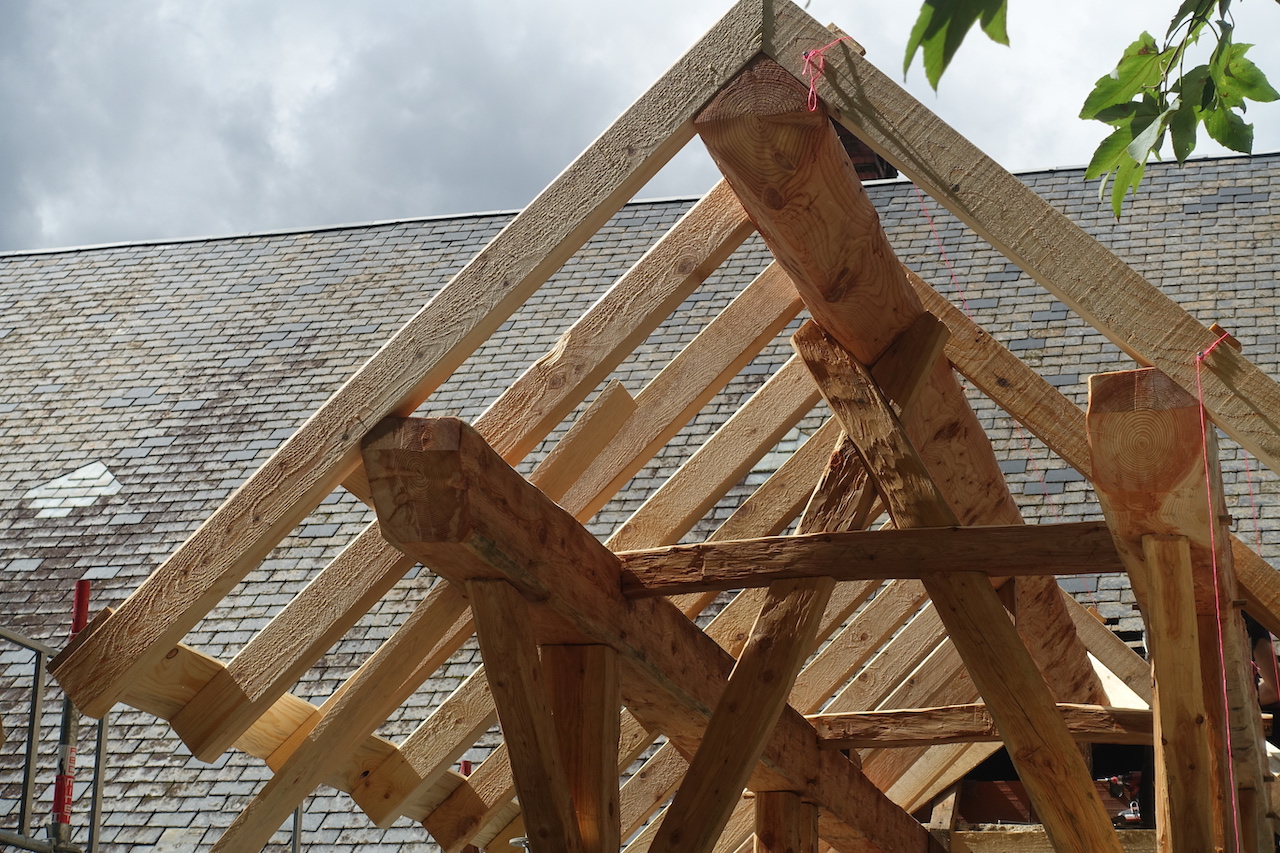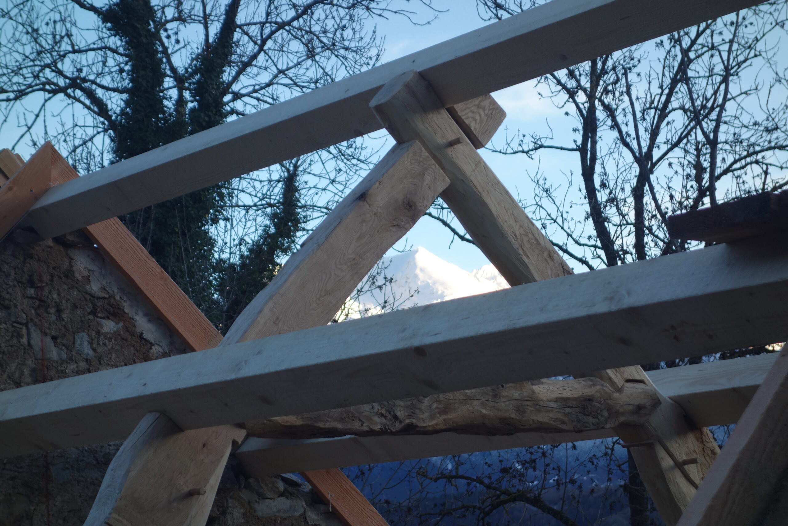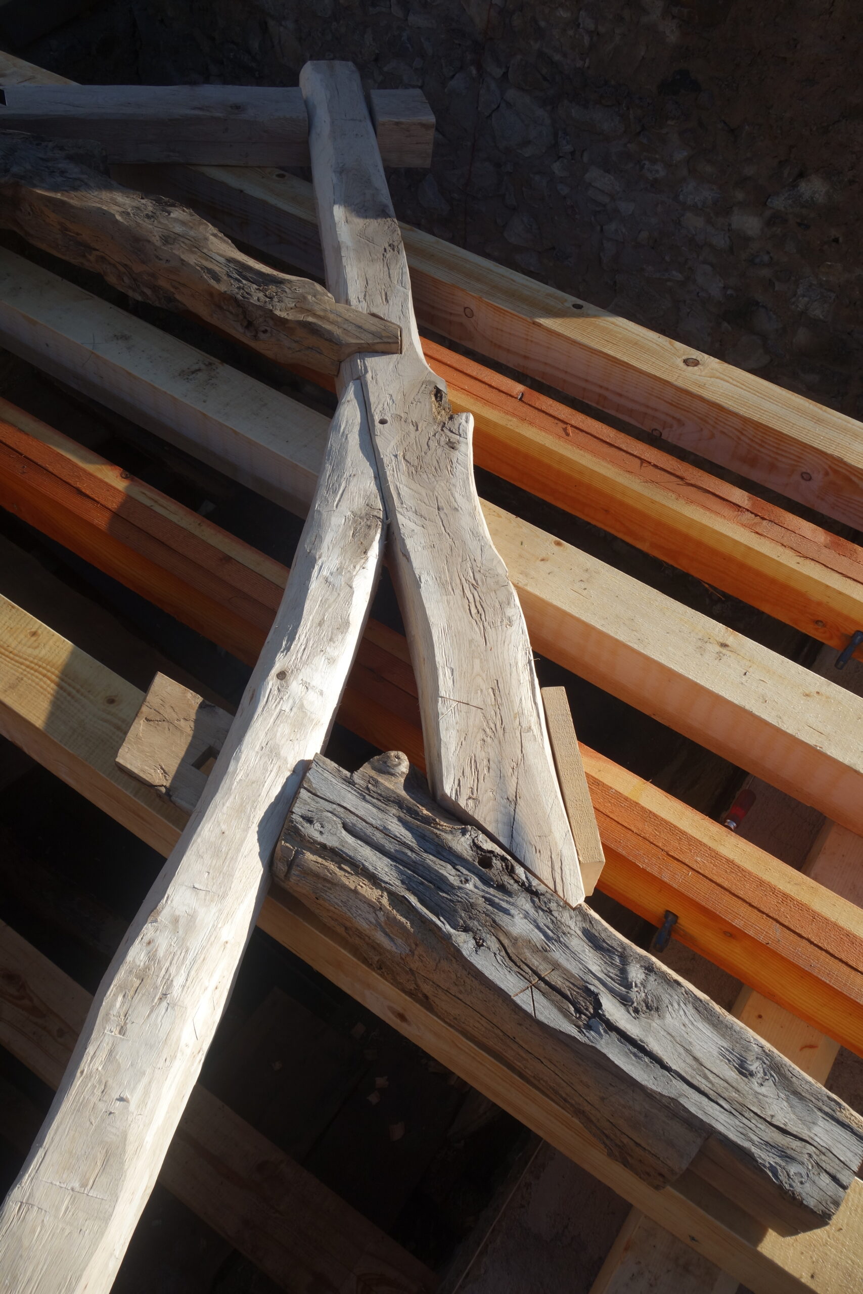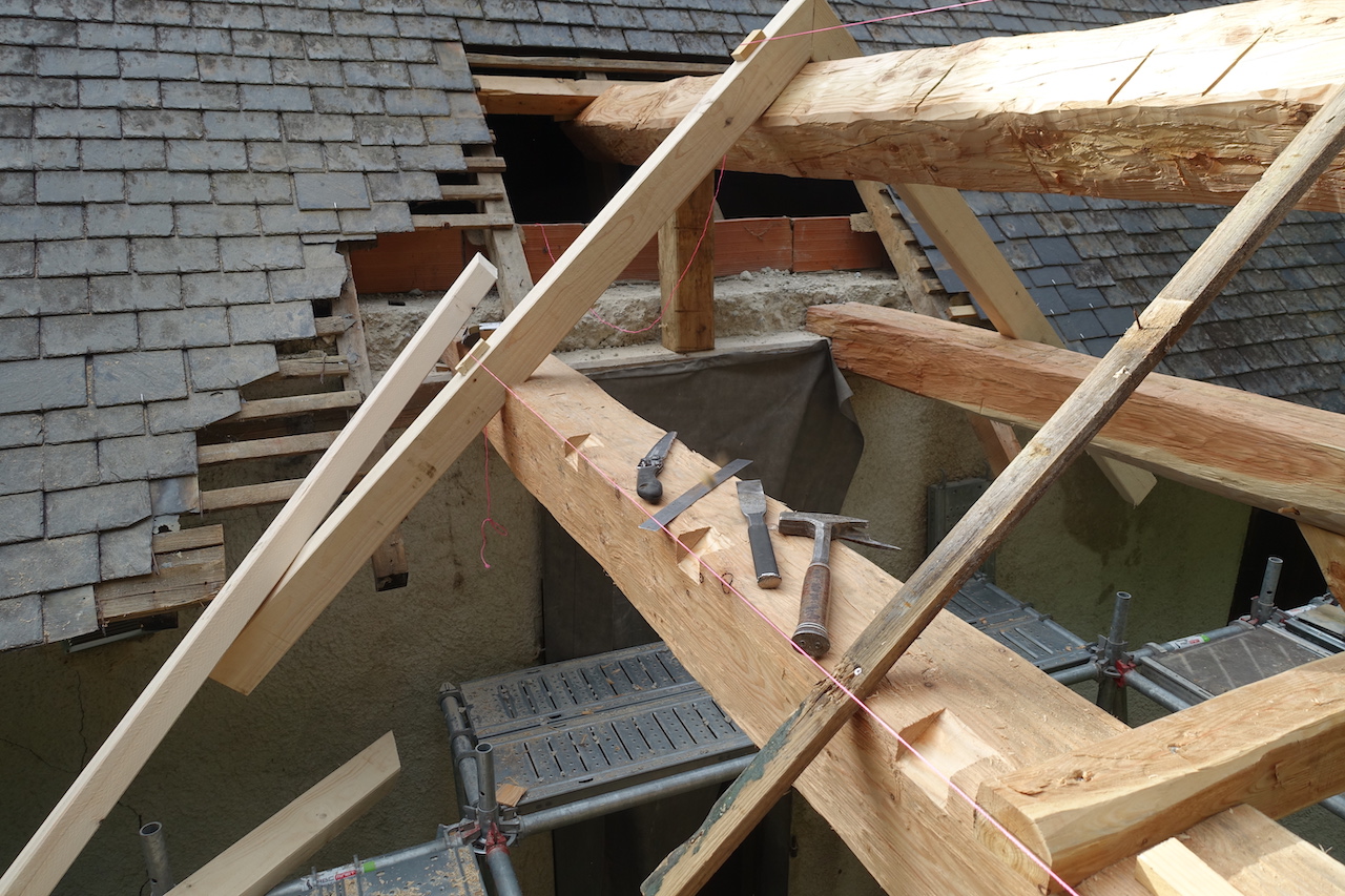 Nos ouvrages de charpente prennent soins de l’existant. En bois équarris à la hache ou en bois sciés, nous portons une attention particulière à l’origine de nos arbres et de nos bois. (Nous avons fais le choix de ne plus utiliser de bois issus de la grande industrie. ) Nous collaborons avec des scieries artisanales, des petits propriétaires forestiers pour renforcer les filières locales et nous prenons le temps de façonner notre bois via des techniques anciennes pré-industriels ou peu énergivore.