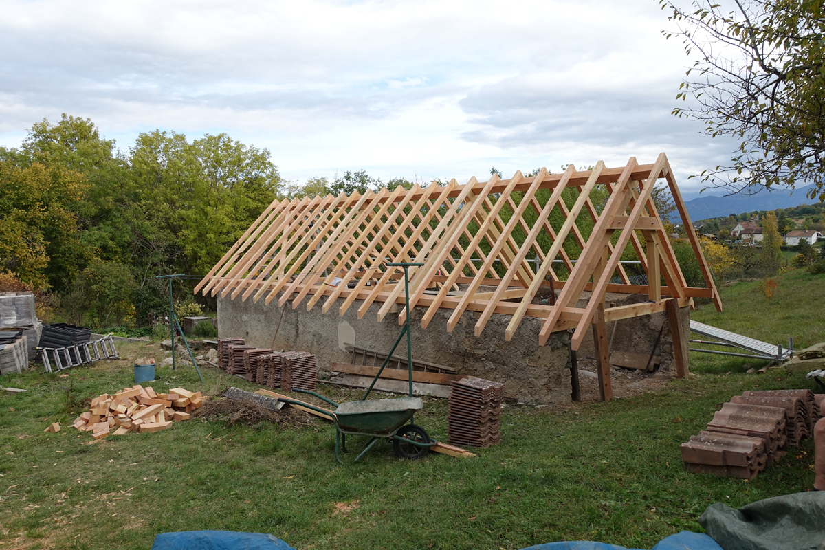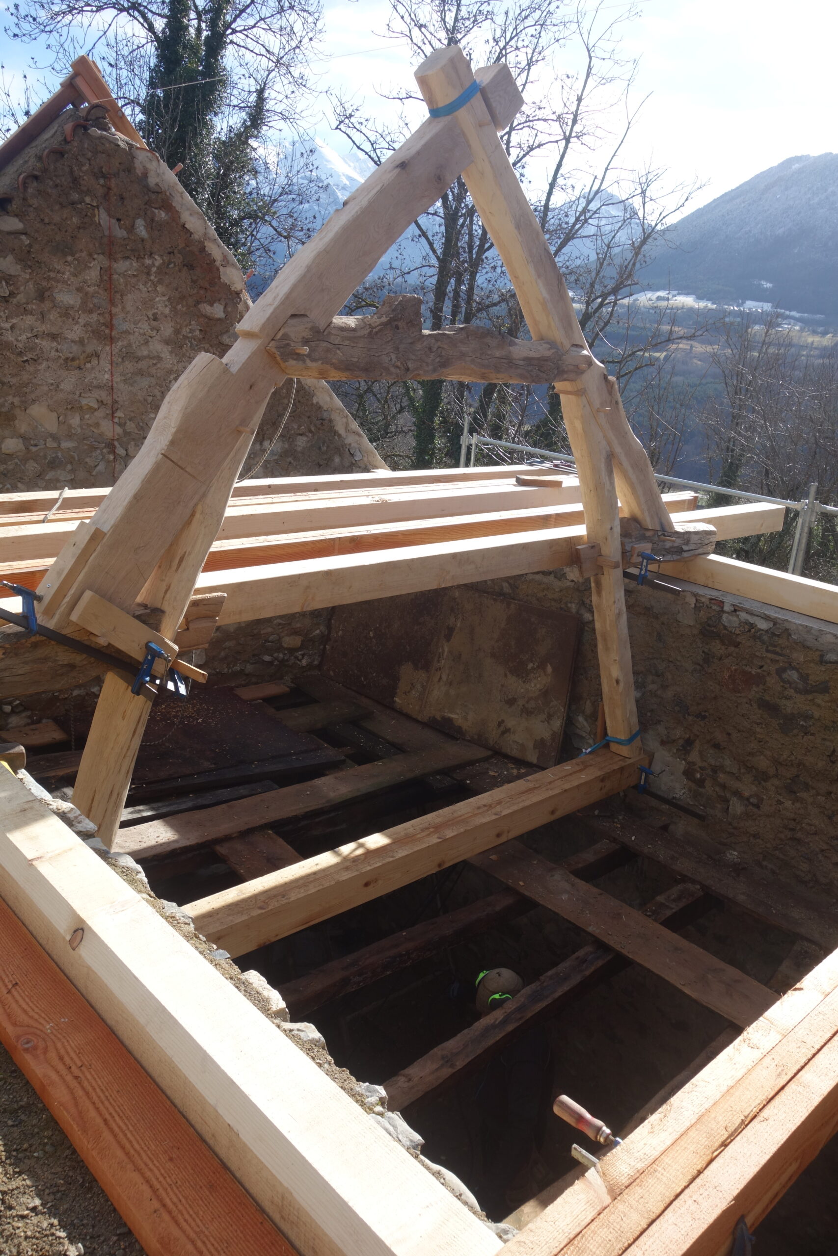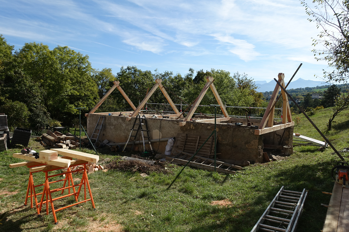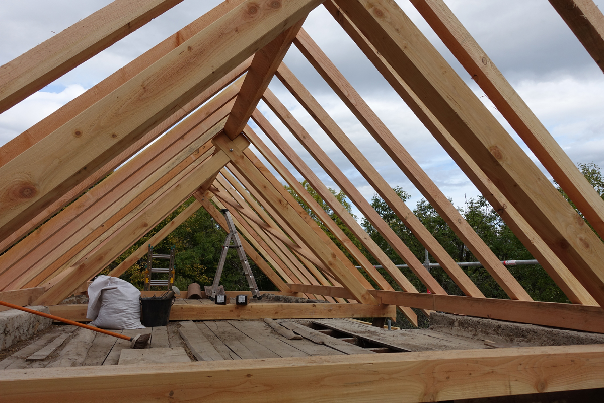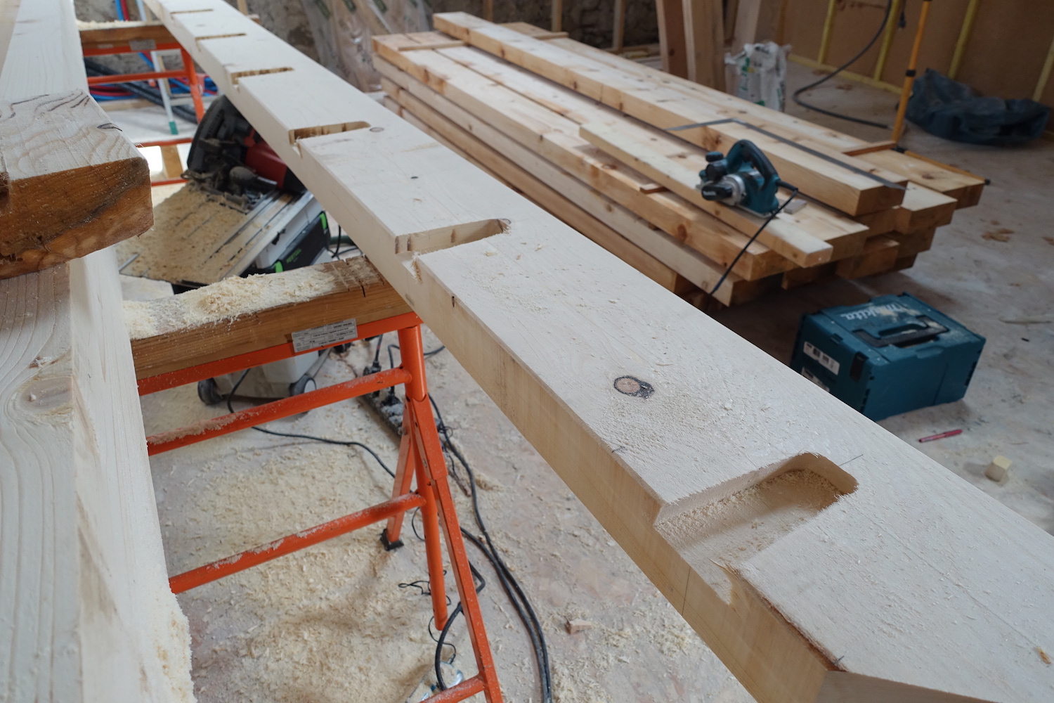 Nos ouvrages de charpente prennent soins de l’existant. En bois équarris à la hache ou en bois sciés, nous portons une attention particulière à l’origine de nos arbres et de nos bois. (Nous avons fais le choix de ne plus utiliser de bois issus de la grande industrie. ) Nous collaborons avec des scieries artisanales, des petits propriétaires forestiers pour renforcer les filières locales et nous prenons le temps de façonner notre bois via des techniques anciennes pré-industriels ou peu énergivore.