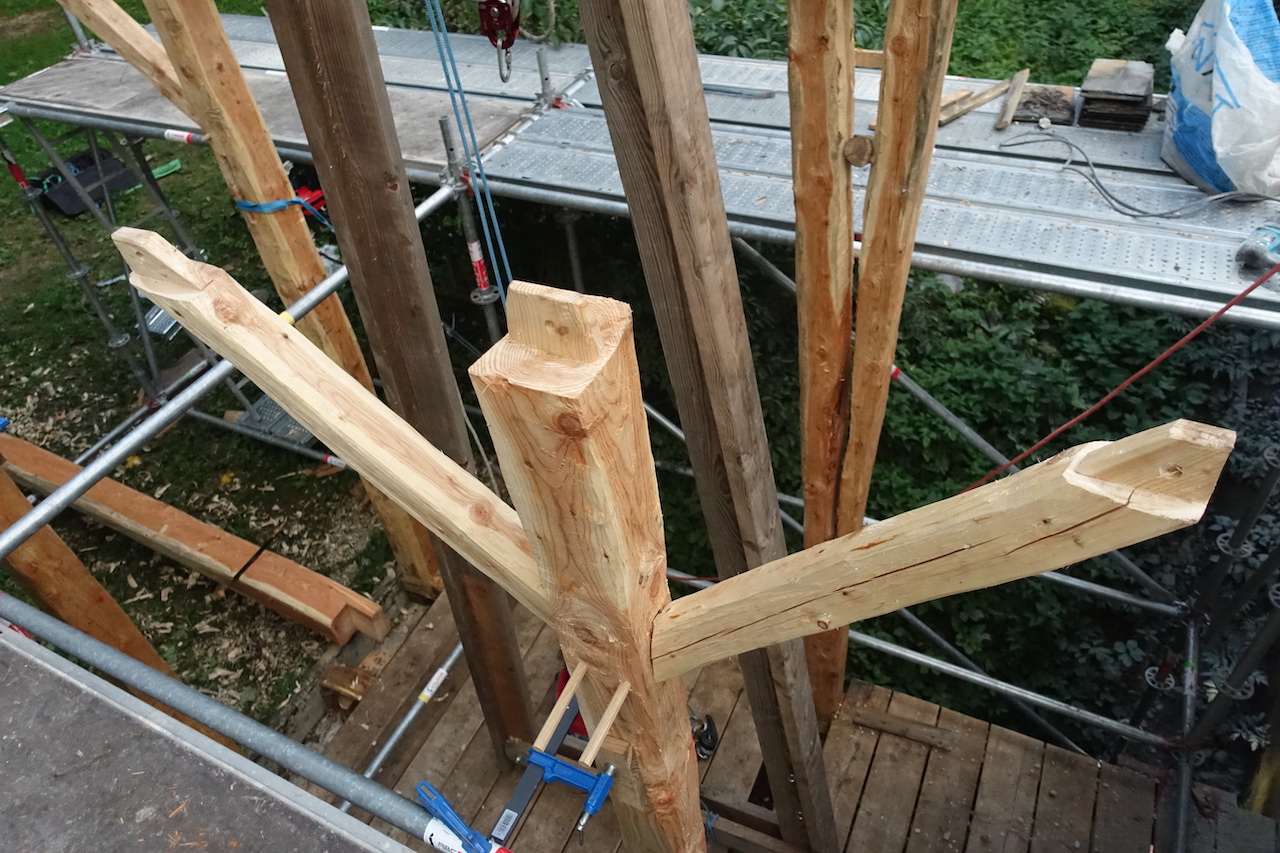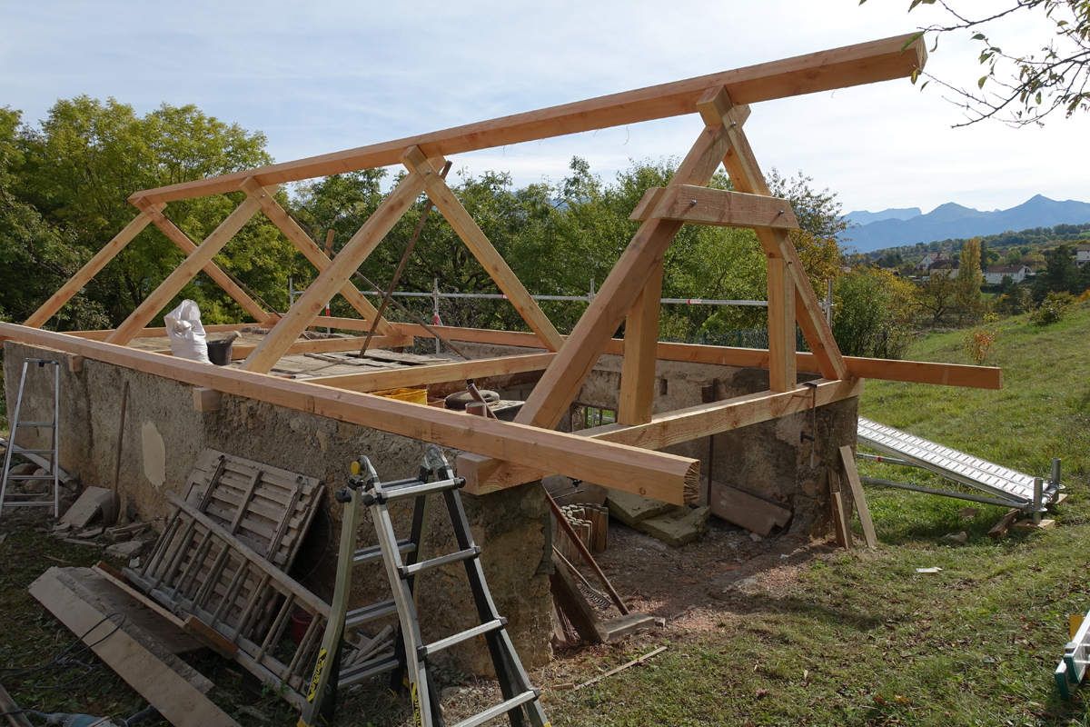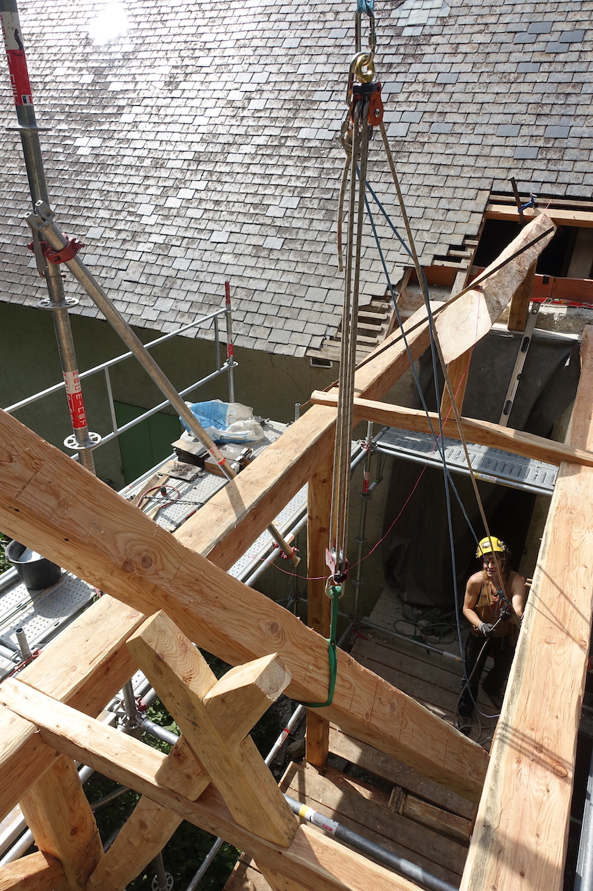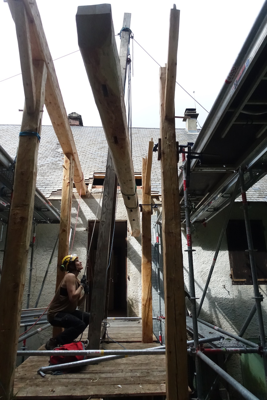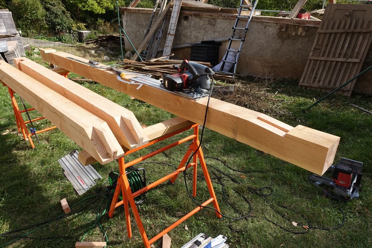 Nos ouvrages de charpente prennent soins de l’existant. En bois équarris à la hache ou en bois sciés, nous portons une attention particulière à l’origine de nos arbres et de nos bois. (Nous avons fais le choix de ne plus utiliser de bois issus de la grande industrie. ) Nous collaborons avec des scieries artisanales, des petits propriétaires forestiers pour renforcer les filières locales et nous prenons le temps de façonner notre bois via des techniques anciennes pré-industriels ou peu énergivore.