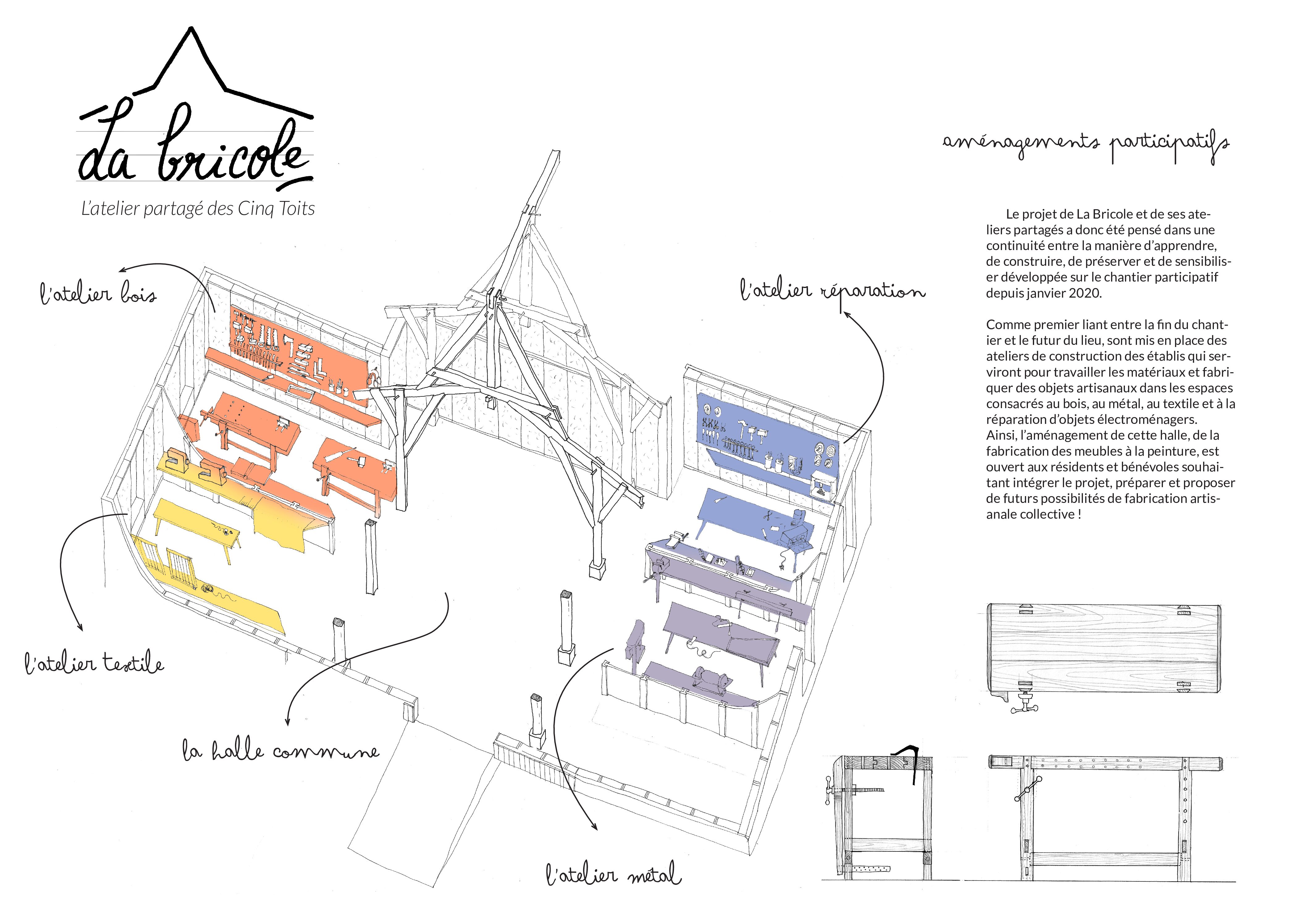 Le dessin est un de nos langages. Qu’il soit artistique, technique ou pédagogique, cette pratique nous ouvre une intercompréhension pour dialoguer en amont du chantier. Un travail préalable de conception mutuelle artisan·e/client·e peut alors être réalisé afin que les projets répondent au mieux aux besoins, aux usages et aux exigences du site d’implantation.