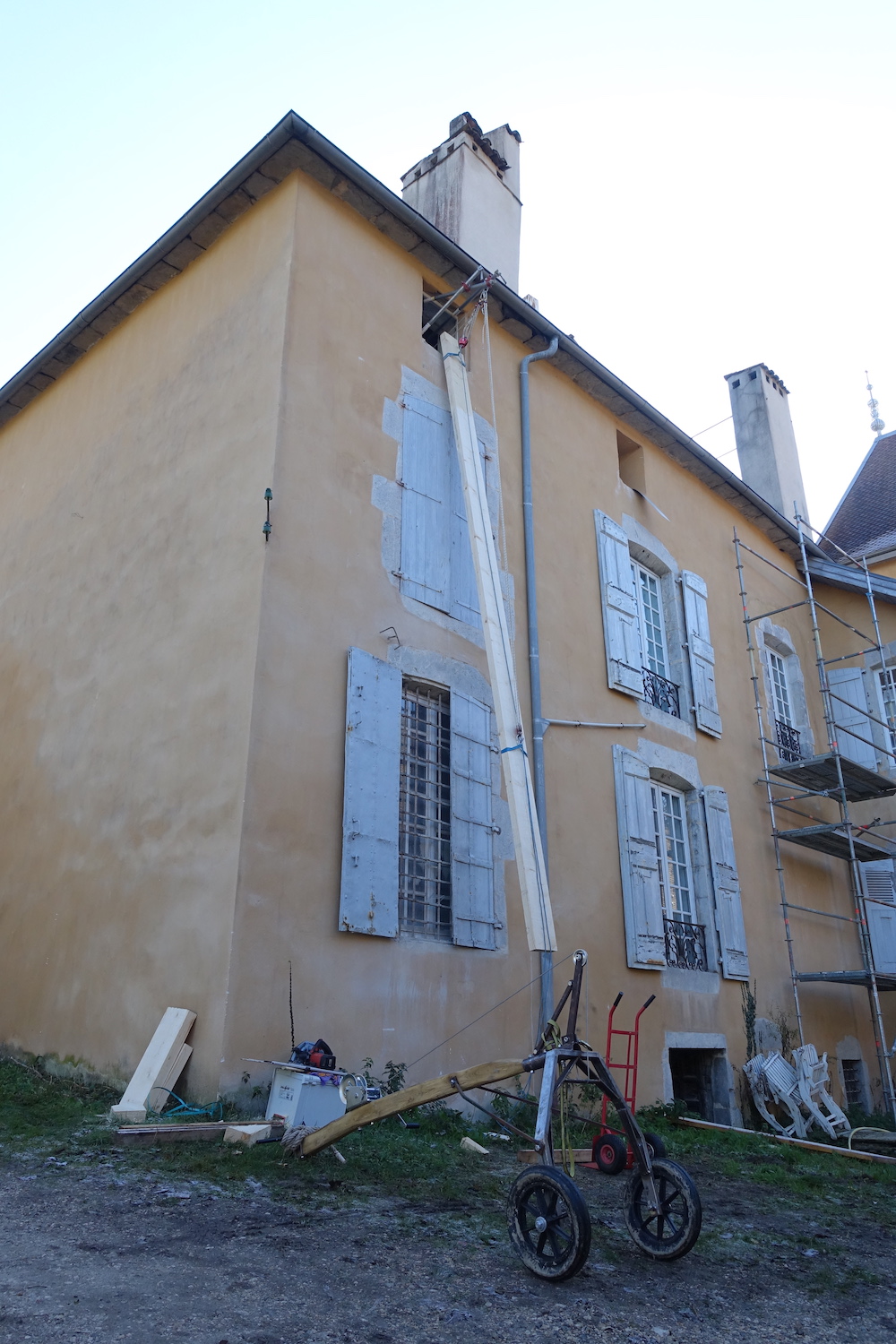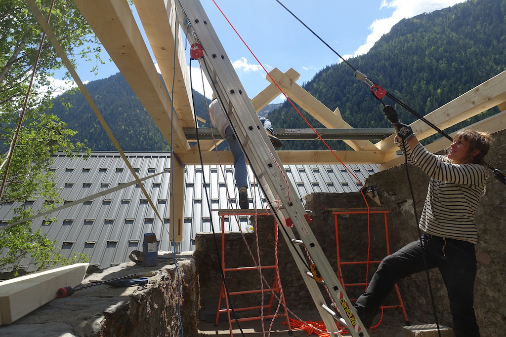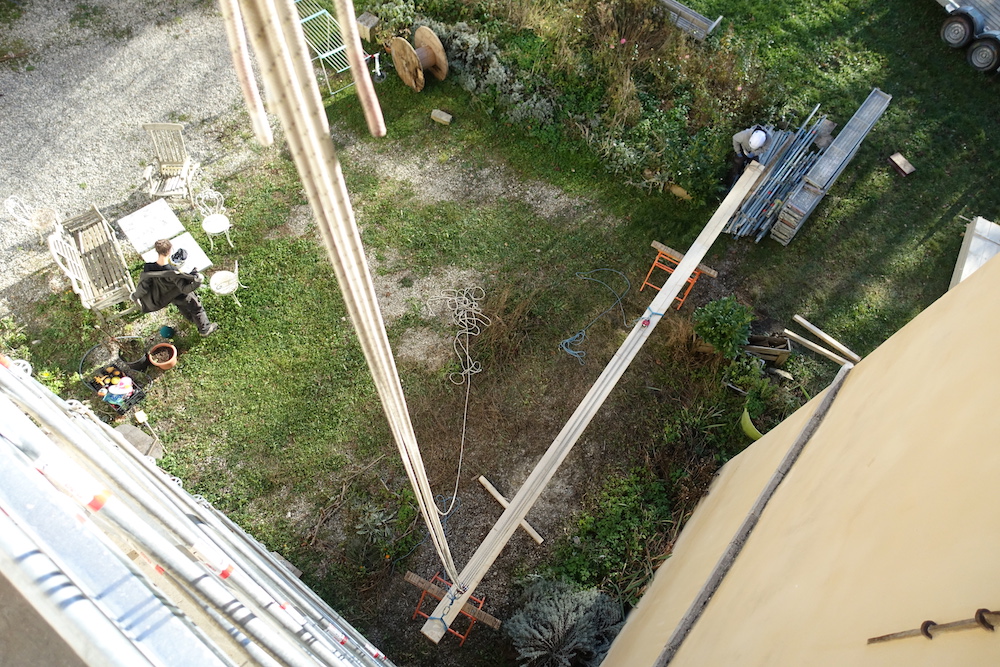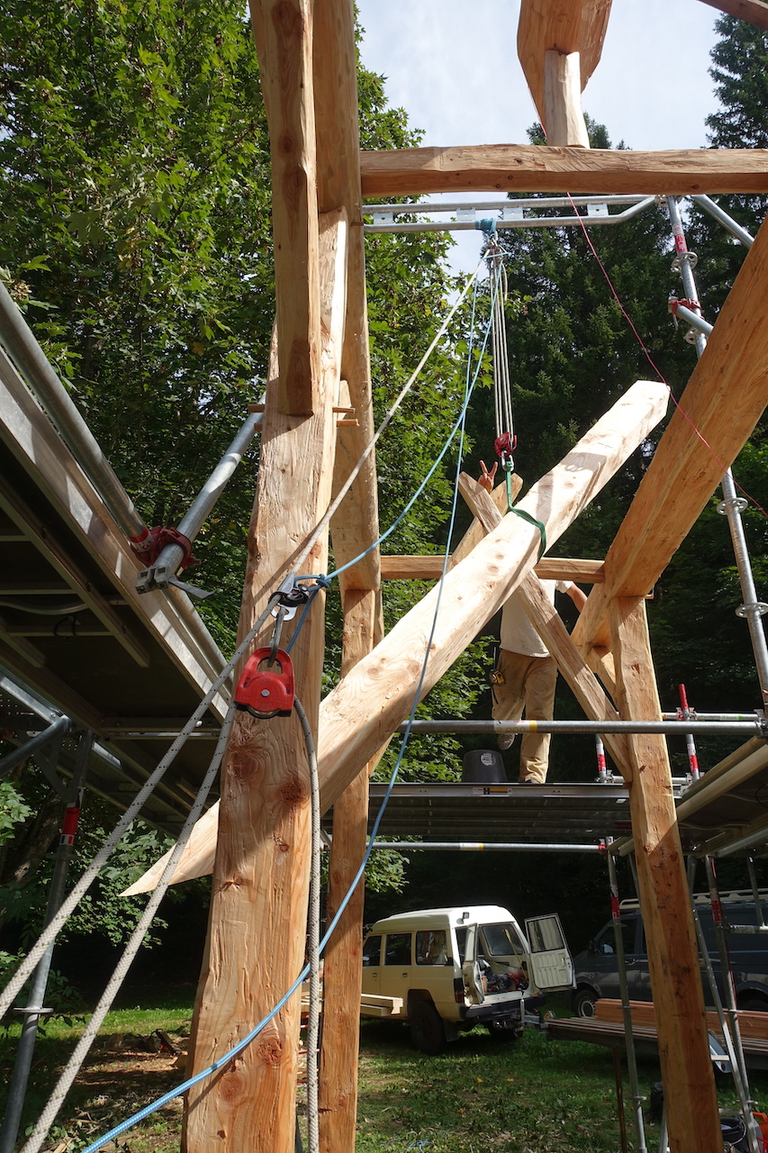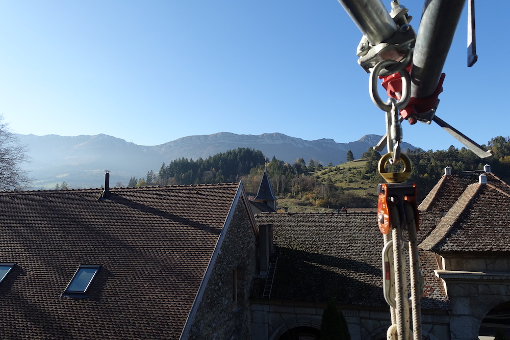 Pour pleins de raisons, nous essayons au maximum d’utiliser ces techniques de levages traditionnelles, mis au goût du jour avec du matériel de spéléo et de cordiste.