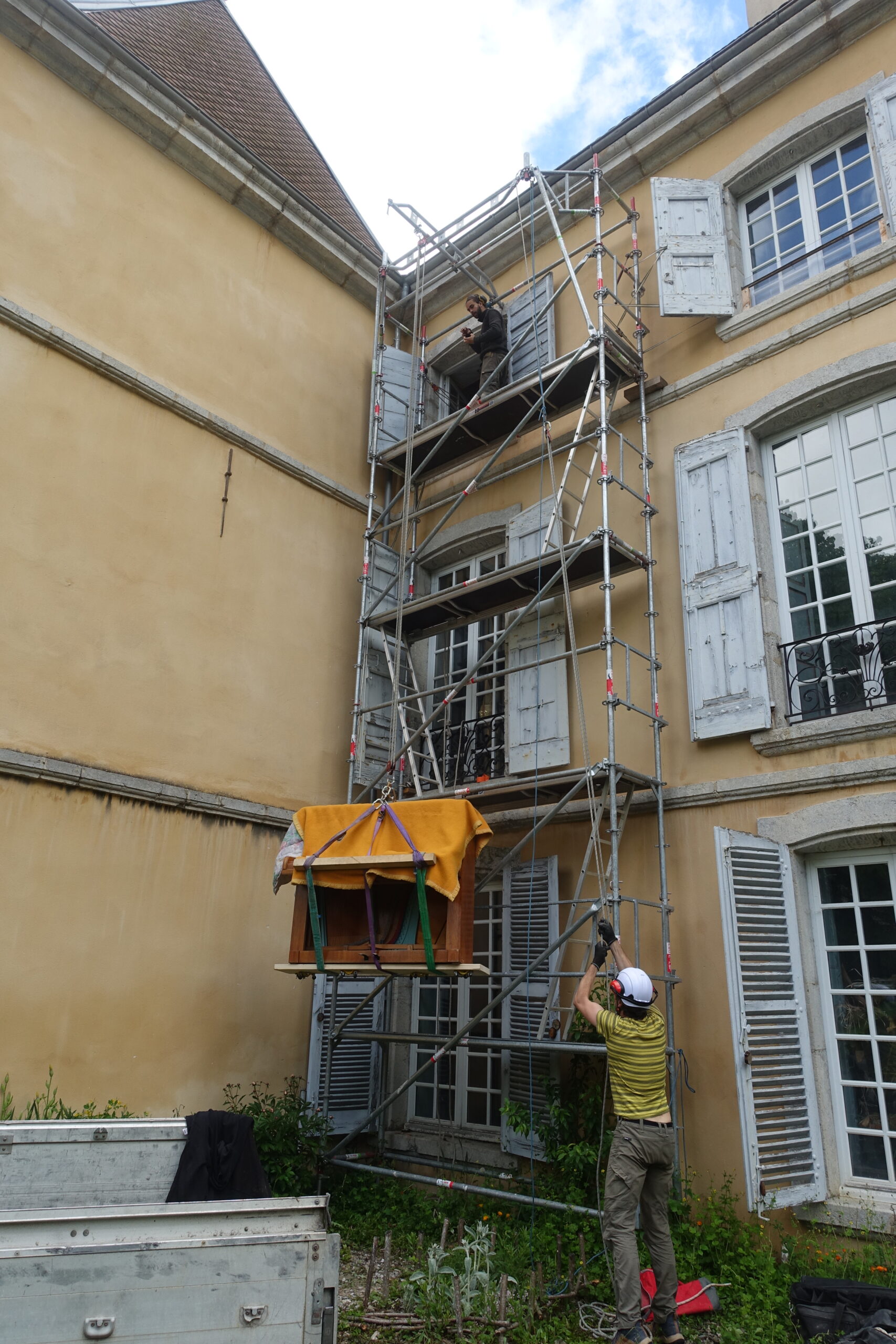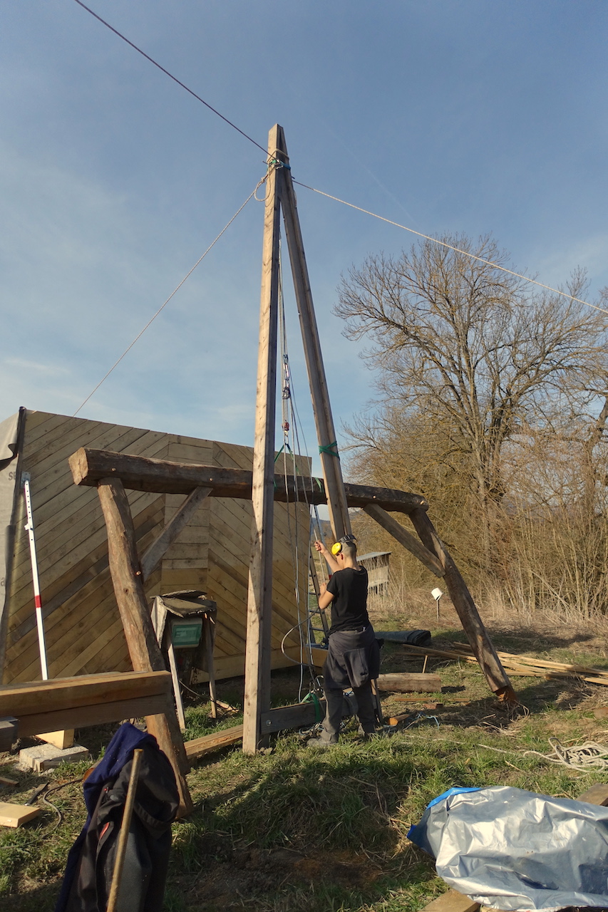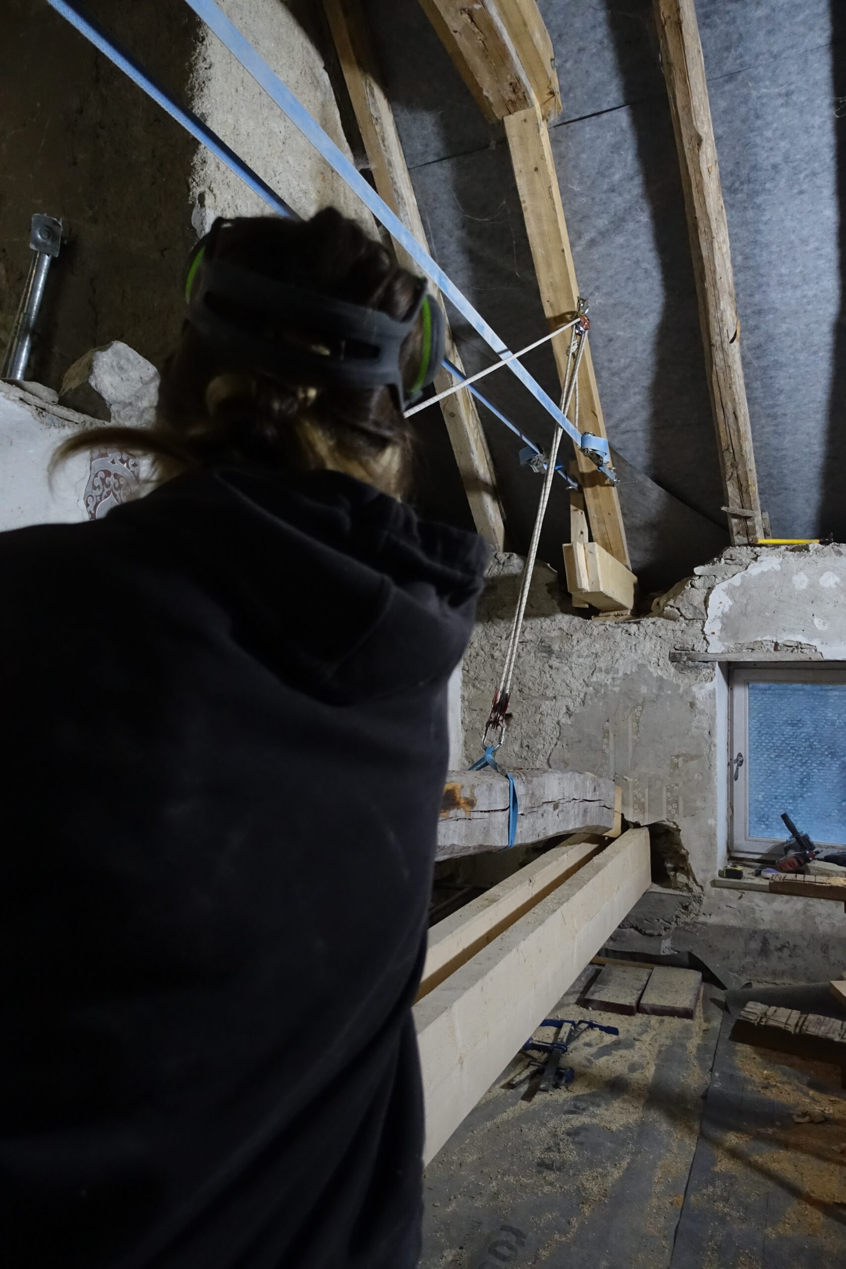 Pour pleins de raisons, nous essayons au maximum d’utiliser ces techniques de levages traditionnelles, mis au goût du jour avec du matériel de spéléo et de cordiste.