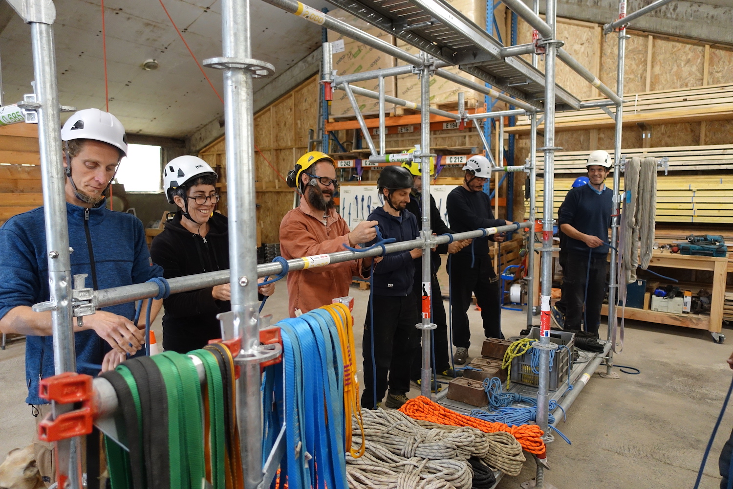 Ces 5 jours d’atelier-formation sont conçus comme un espace de pratiques et d’expérimentations libéré de nos contraintes quotidiennes : Pouvoir enfin prendre le temps d’essayer un levage qu’on ose même pas imaginer sur un chantier par manque de temps et connaissance.